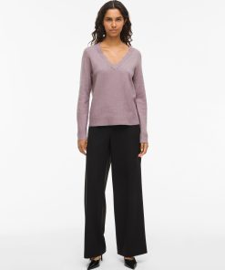 VILA Women’s Vinikolina V-neck Knitted Pullover | Toadstool