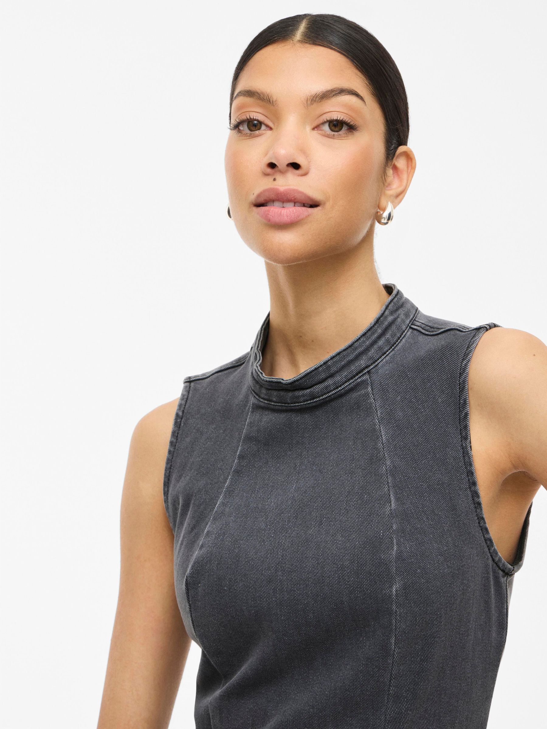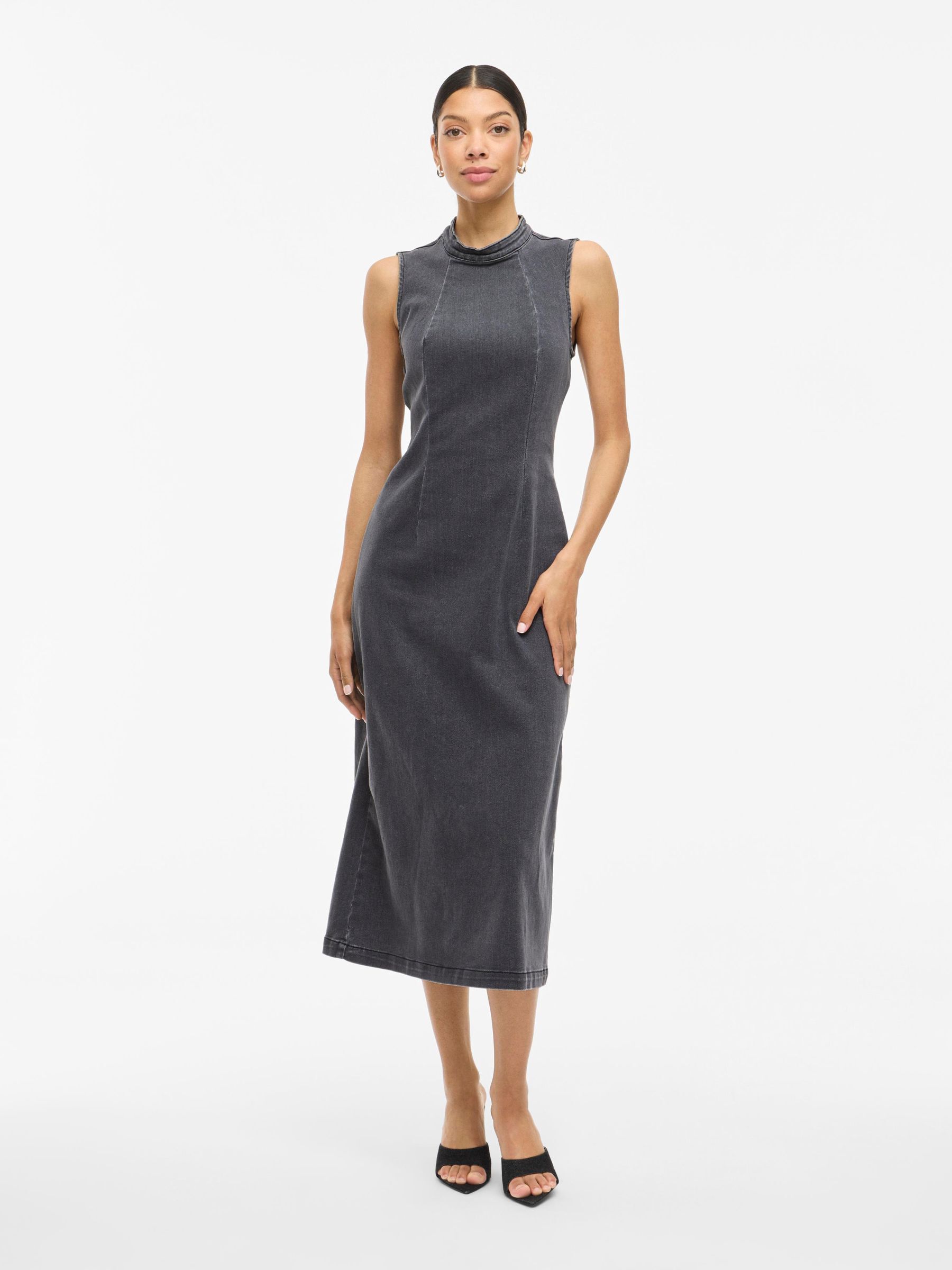 • Sleeveless denim dress• Midi-length• High neck• Back zip fastening• Back slit • Regular fit• Length: 130 cm in size M