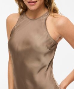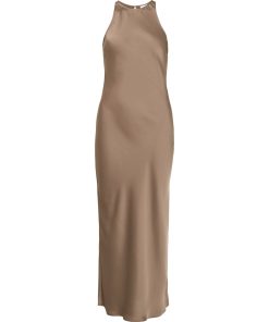 • Sleeveless maxi dress• Round neckline• Button keyhole fastening at back• Satin look fabric• Body-hugging fit• Length: 135 cm in size 38