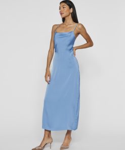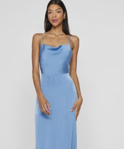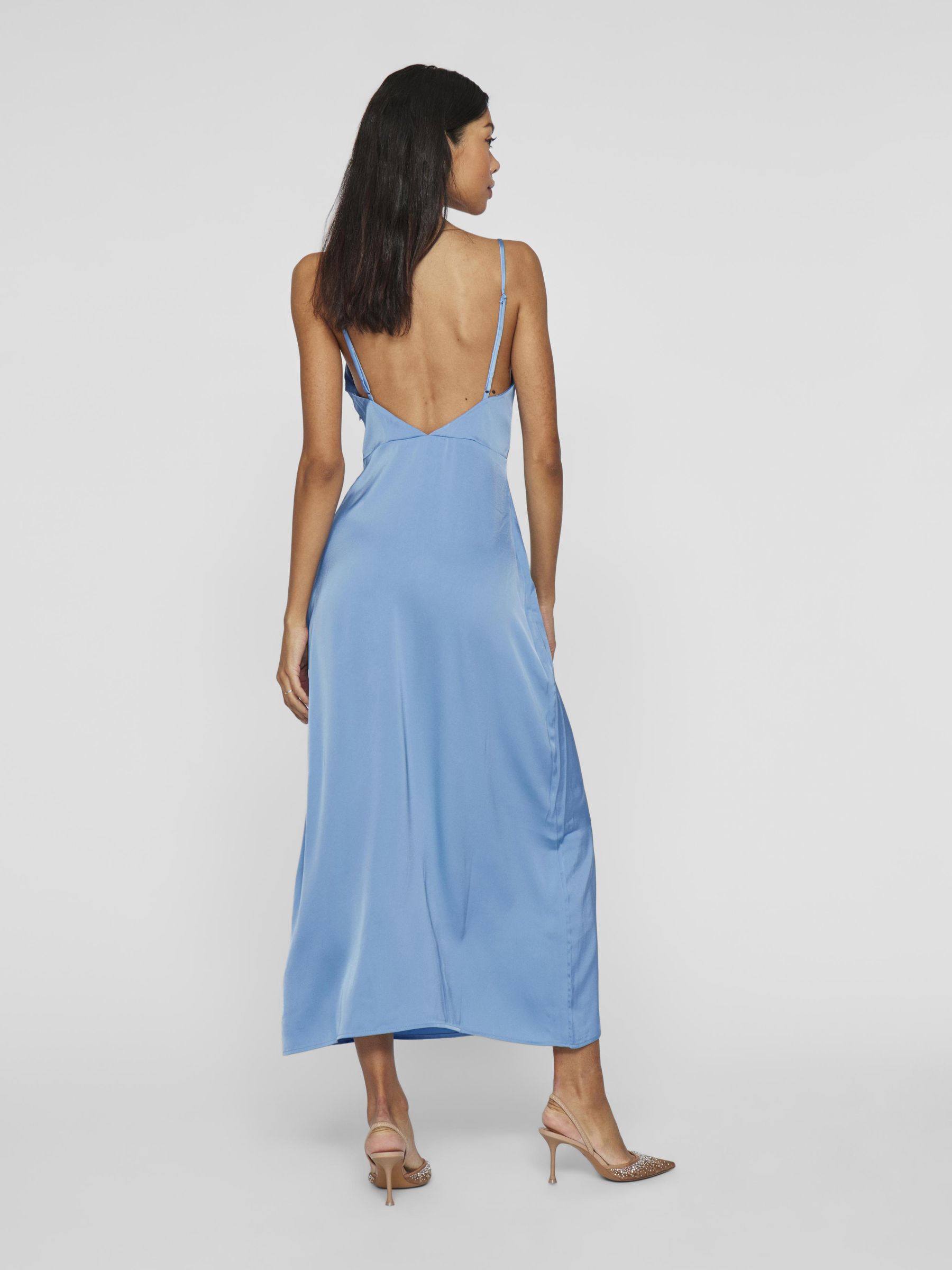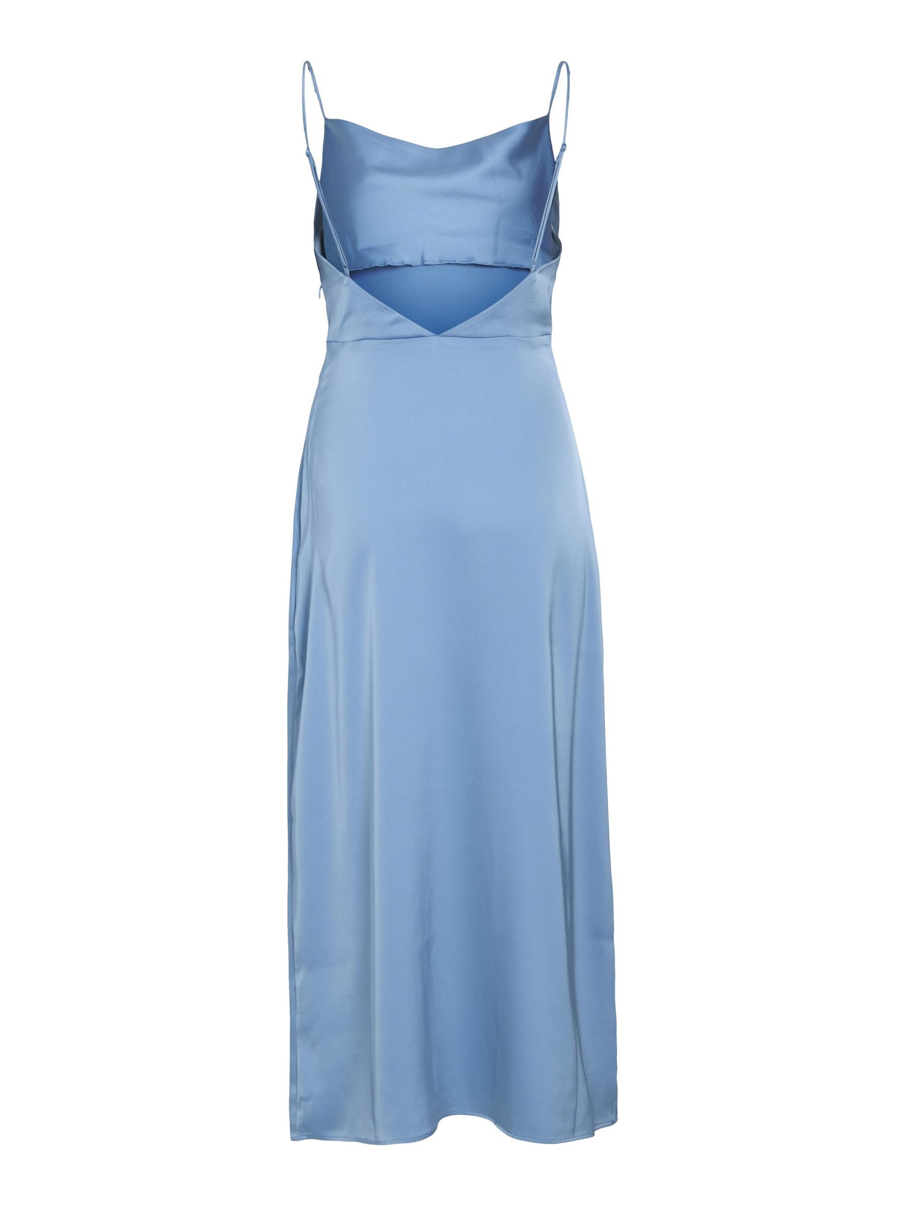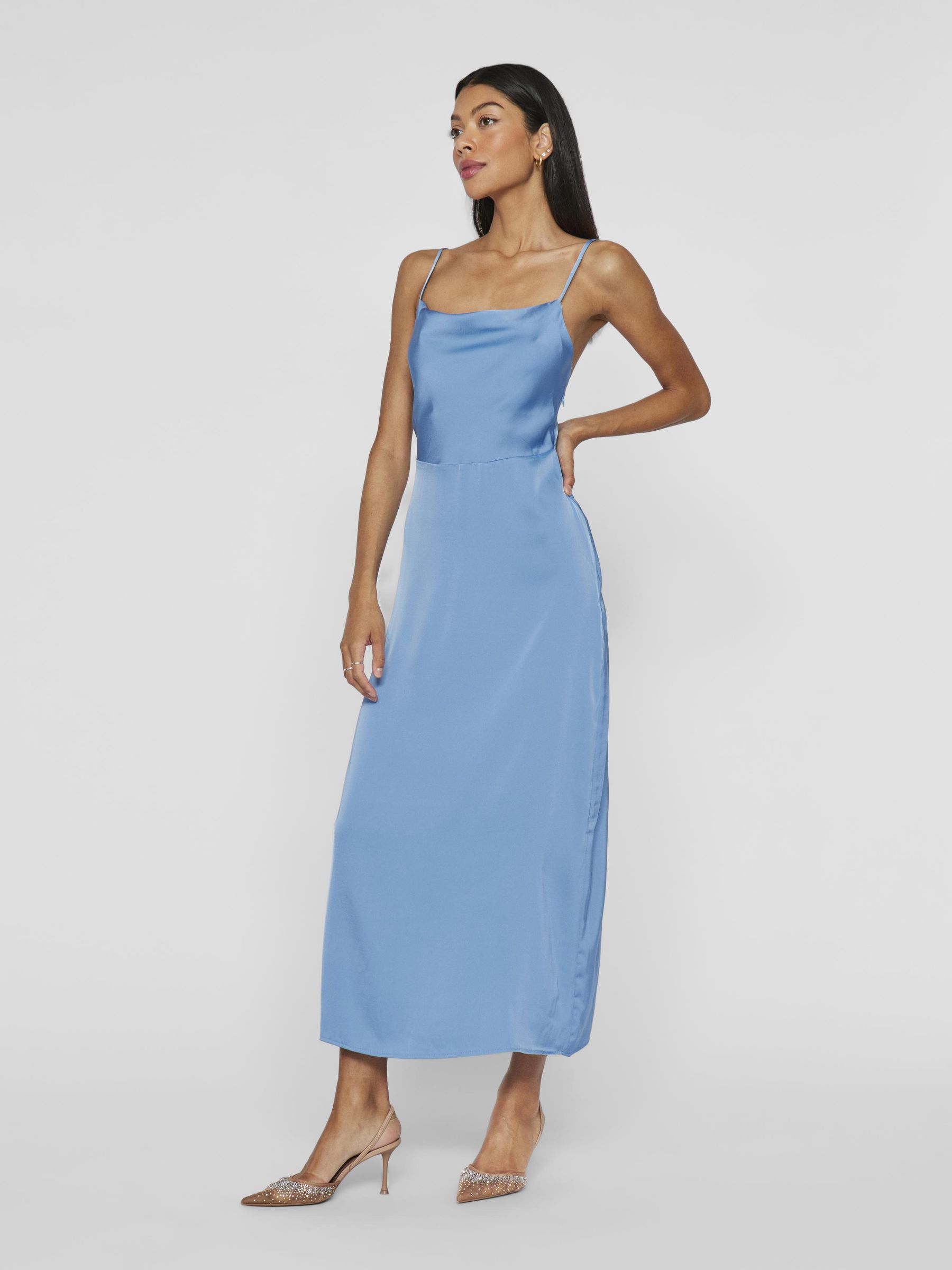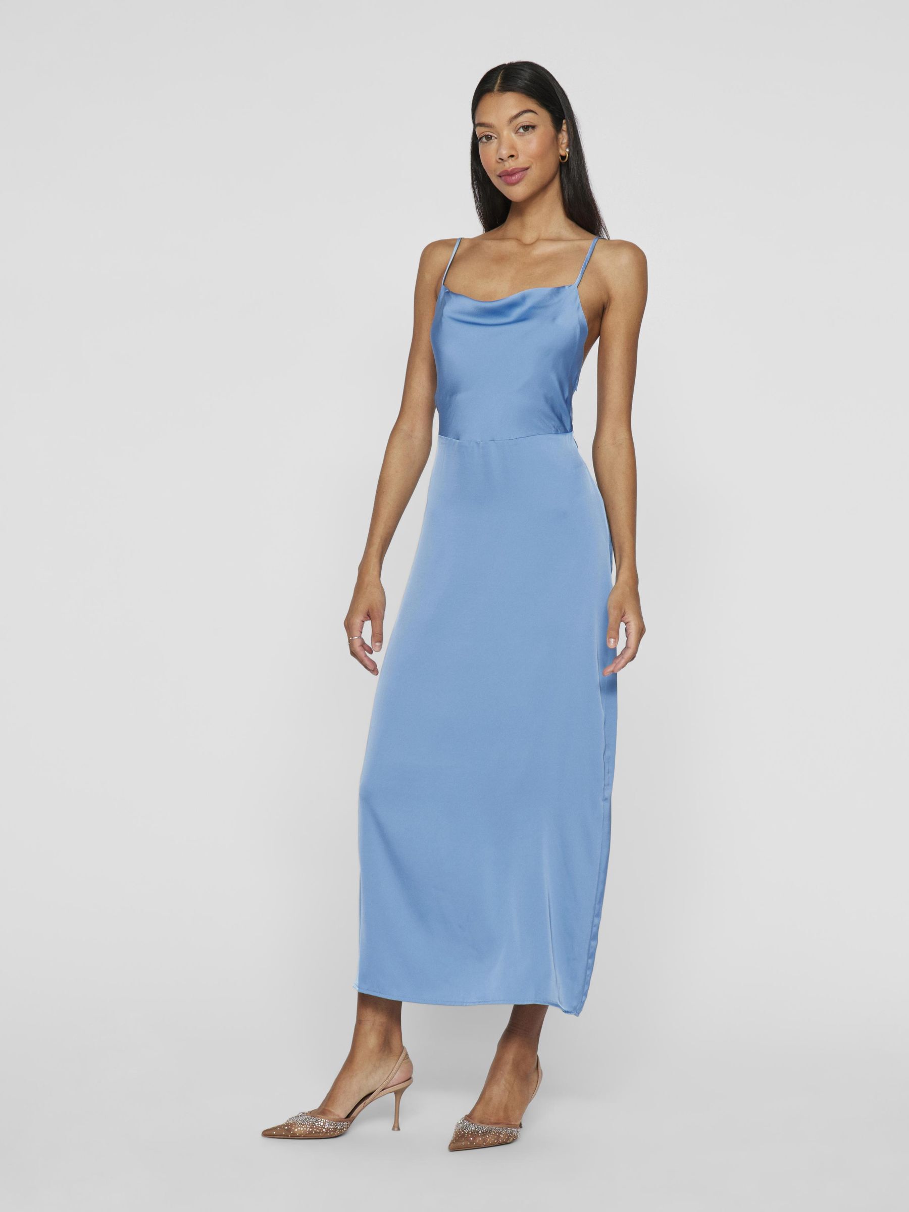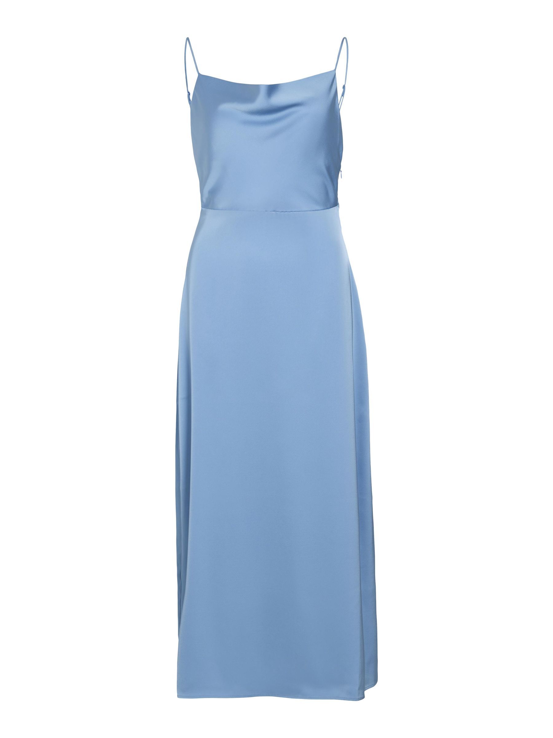 • Maxi occasion dress with adjustable straps• Cowl neckline at the front• Open back• Concealed side zip fastening• Cutline at waist• Shiny, non-stretchable fabric• Length: 136 cm in size 38