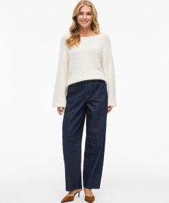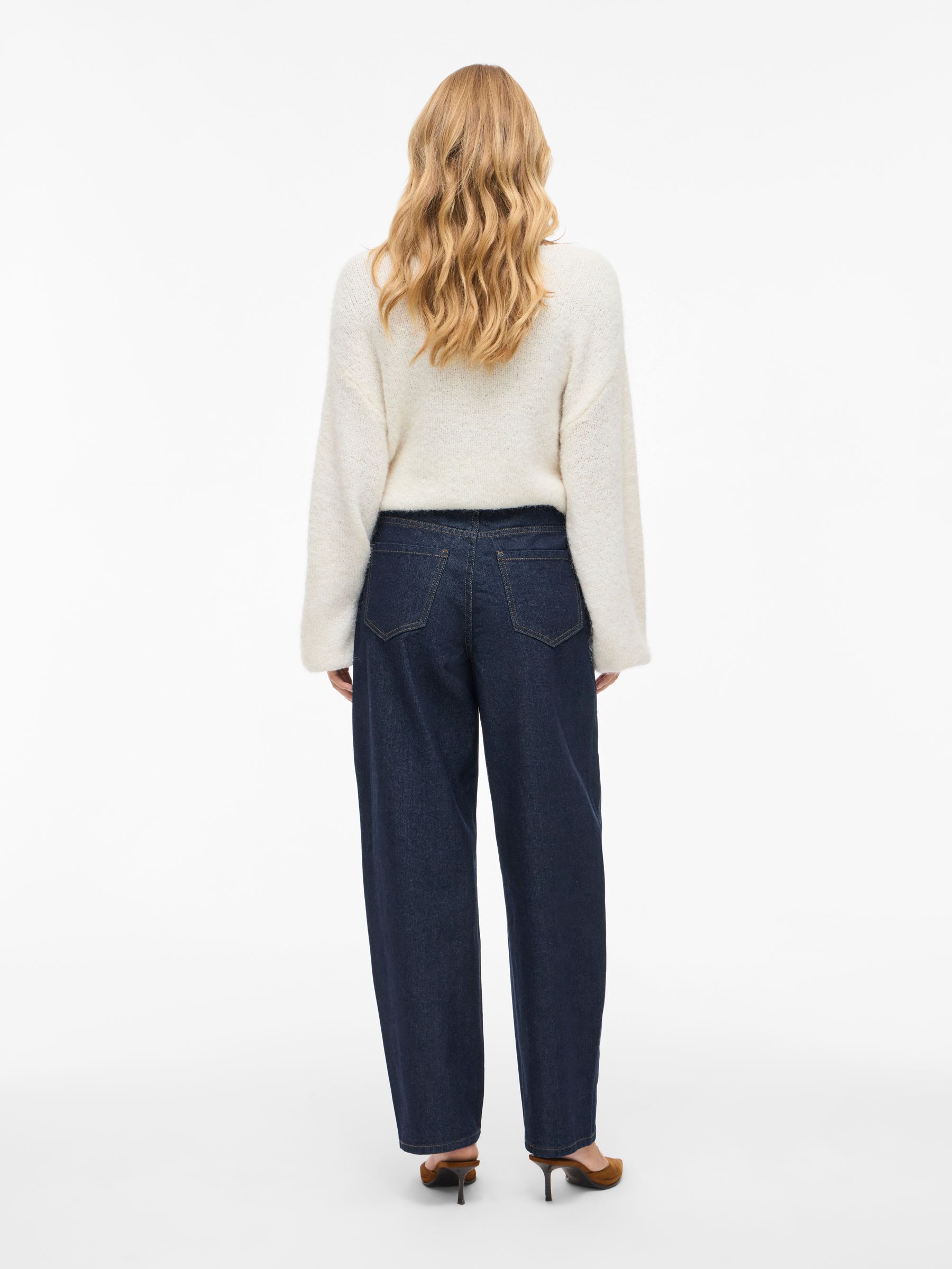 • Barrel-fit jeans• High waist• Zip and button fastening• Front and back pockets• Belt loops• Inseam: 78 cm in size 38• Frontrise: 30 cm in size 38