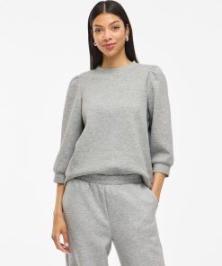 VILA Women’s Vireflect 3/4 Sleeved Sweatshirt | Light Grey Melange
