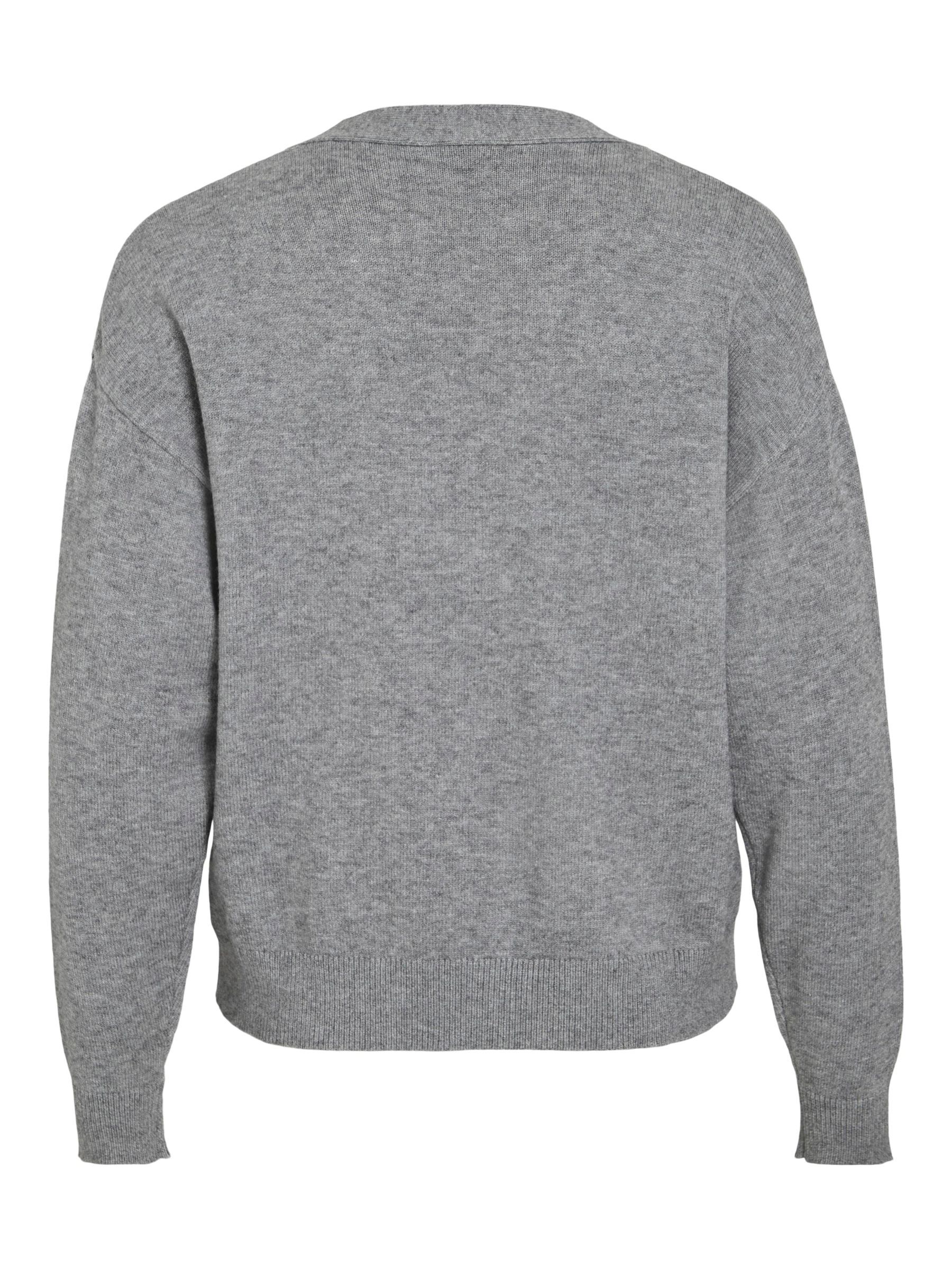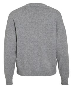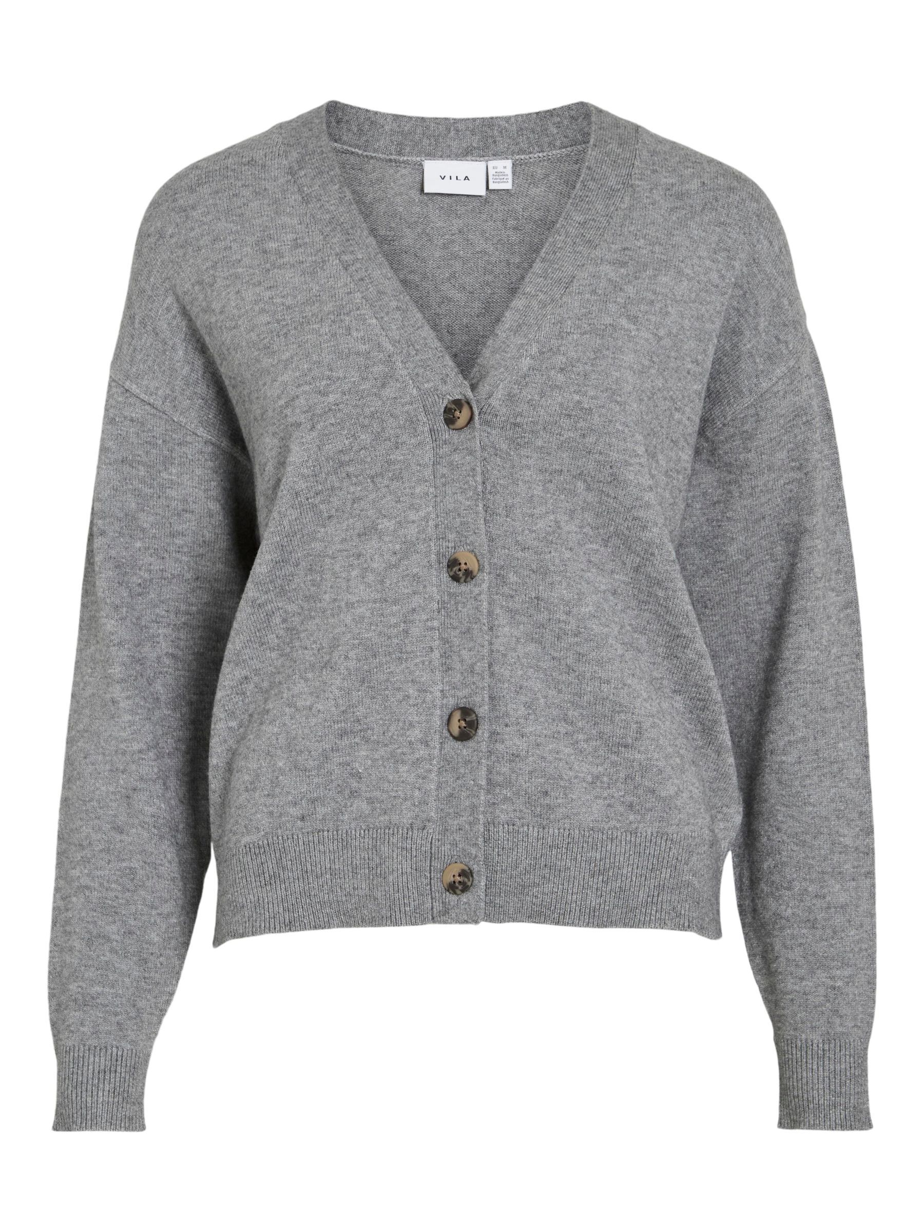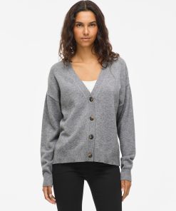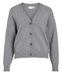 VILA Women’s Viril V-neck Knitted Cardigan | Medium Grey Melange