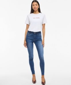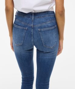 VILA Women’s Visarah Mid-waist Skinny Fit Jeans | Medium Blue Denim