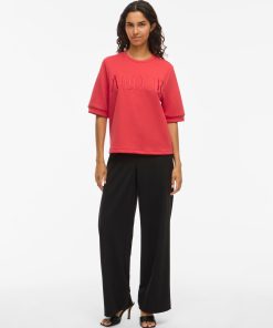 VILA Women’s Visif Short Sleeved Sweatshirt | Poppy Red