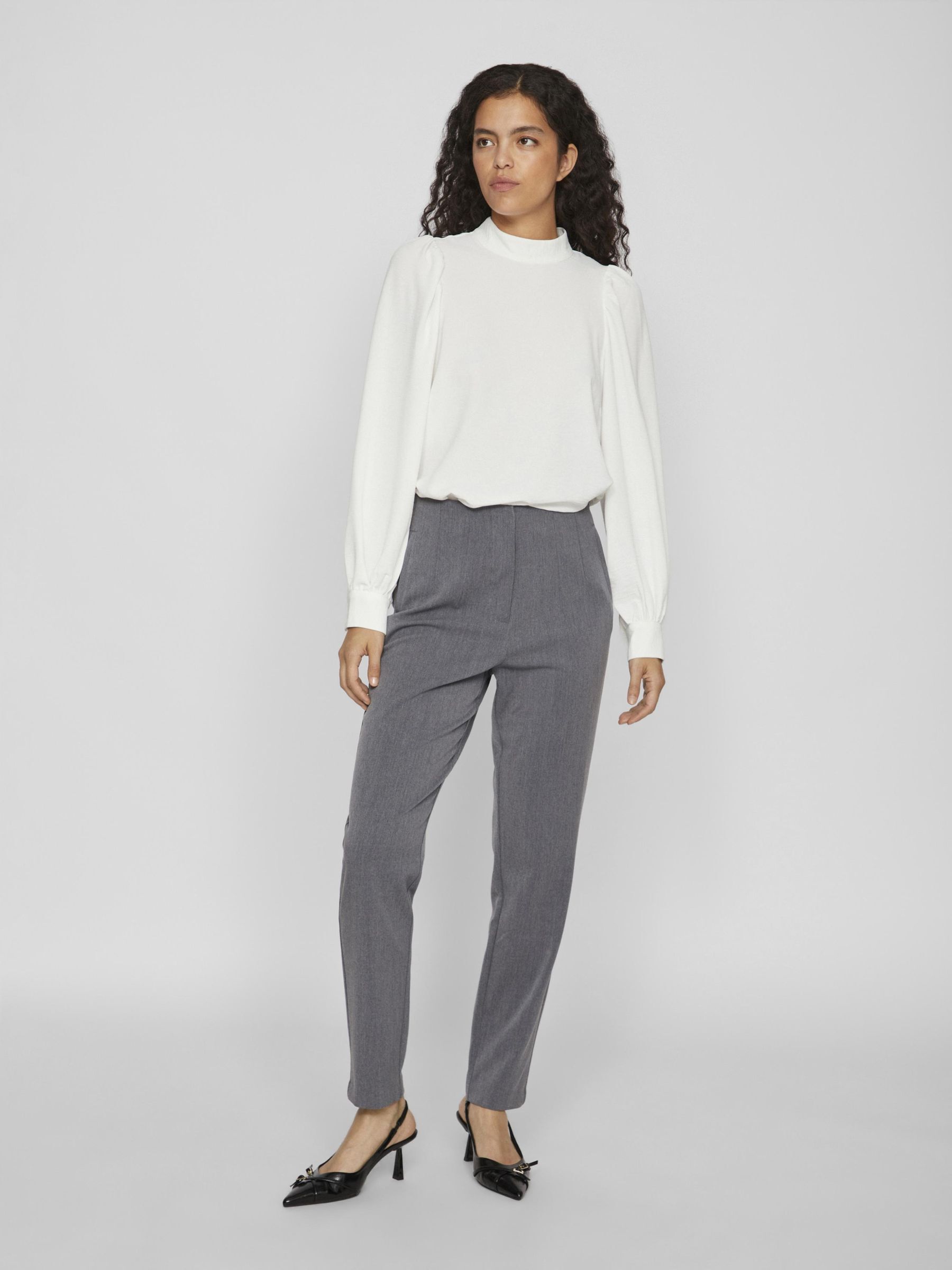 VILA Women’s Vivarone High Waist Trousers | Medium Grey Melange