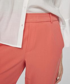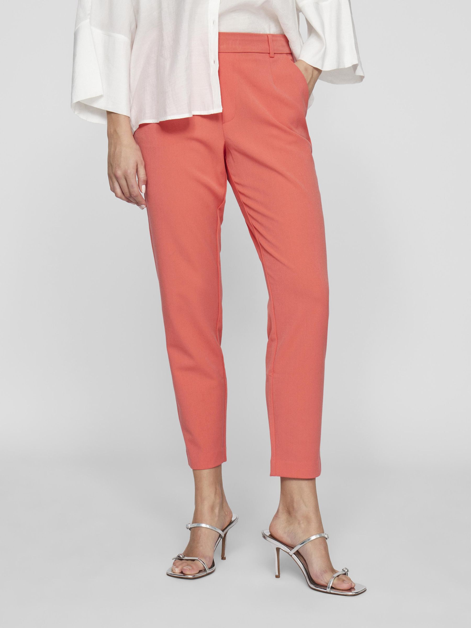 – High waist pants- Stretch-back waist- Faux zip fastening- Side pockets- Decorative back pockets- Belt loops – Straight, slim fit- Inseam: 69 cm in size 38- Frontrise: 28 cm in size 38