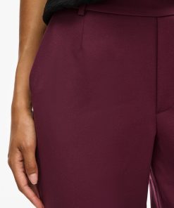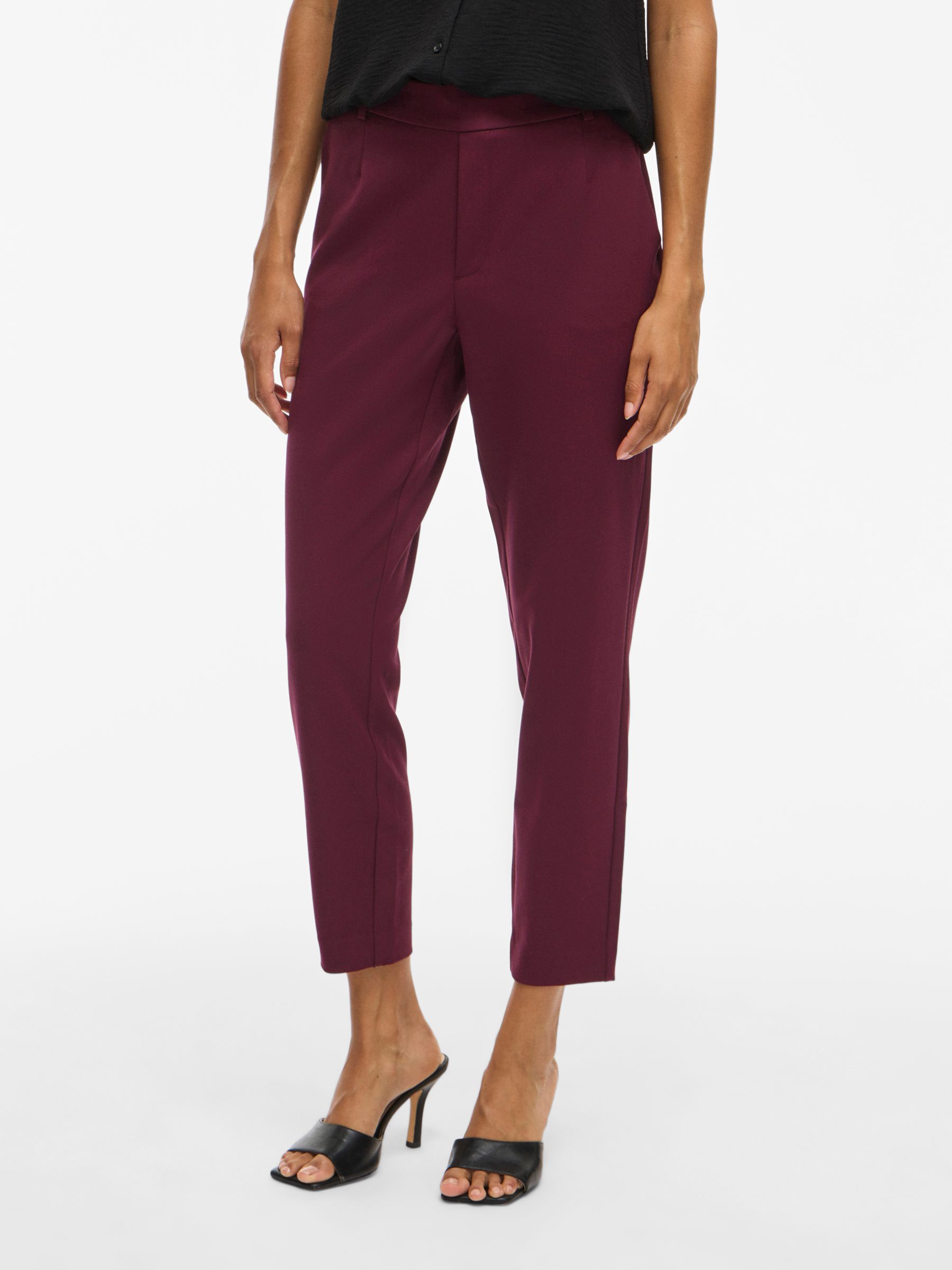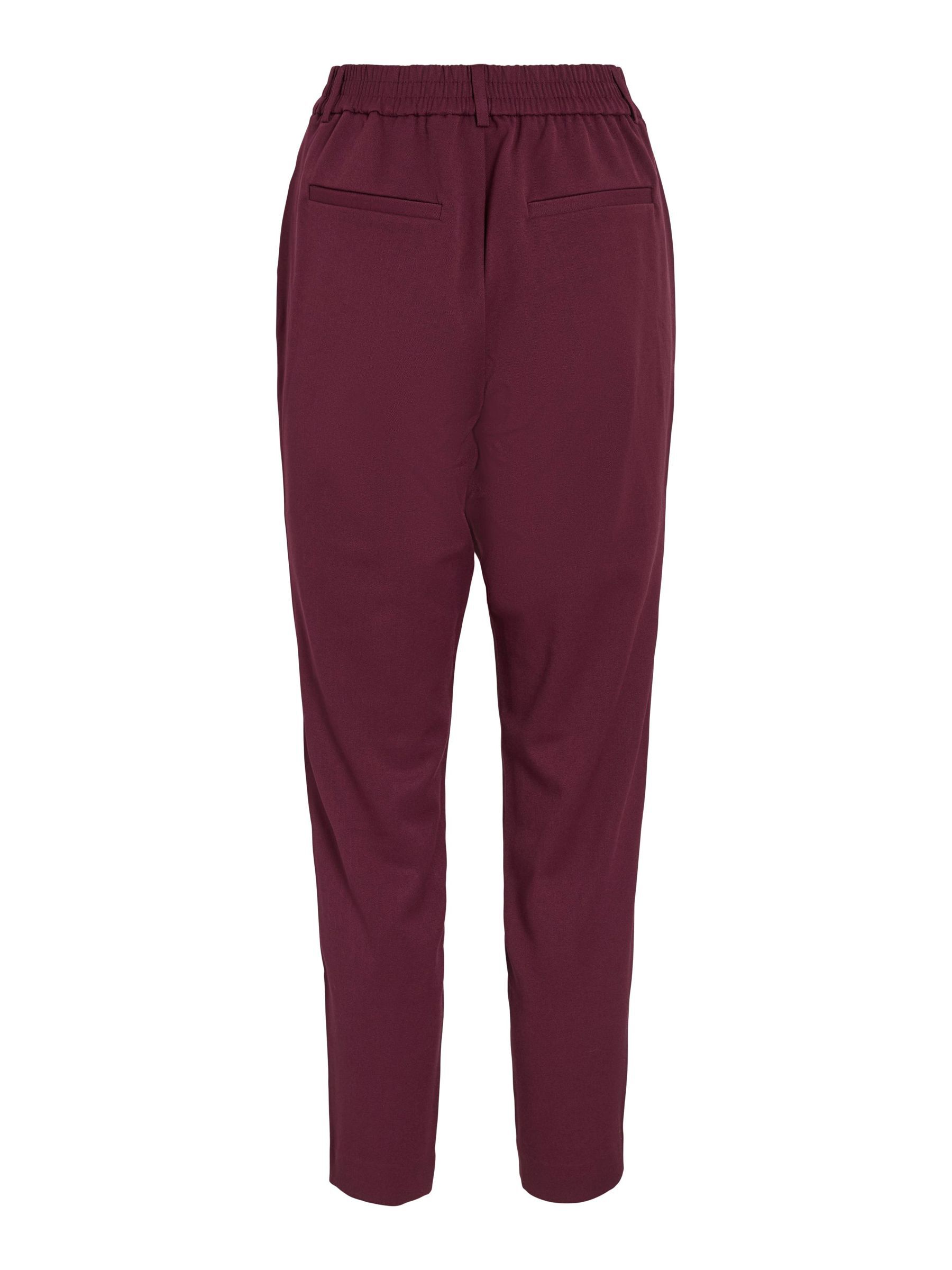 – High waist pants- Stretch-back waist- Faux zip fastening- Side pockets- Decorative back pockets- Belt loops – Straight, slim fit- Inseam: 69 cm in size 38- Frontrise: 28 cm in size 38