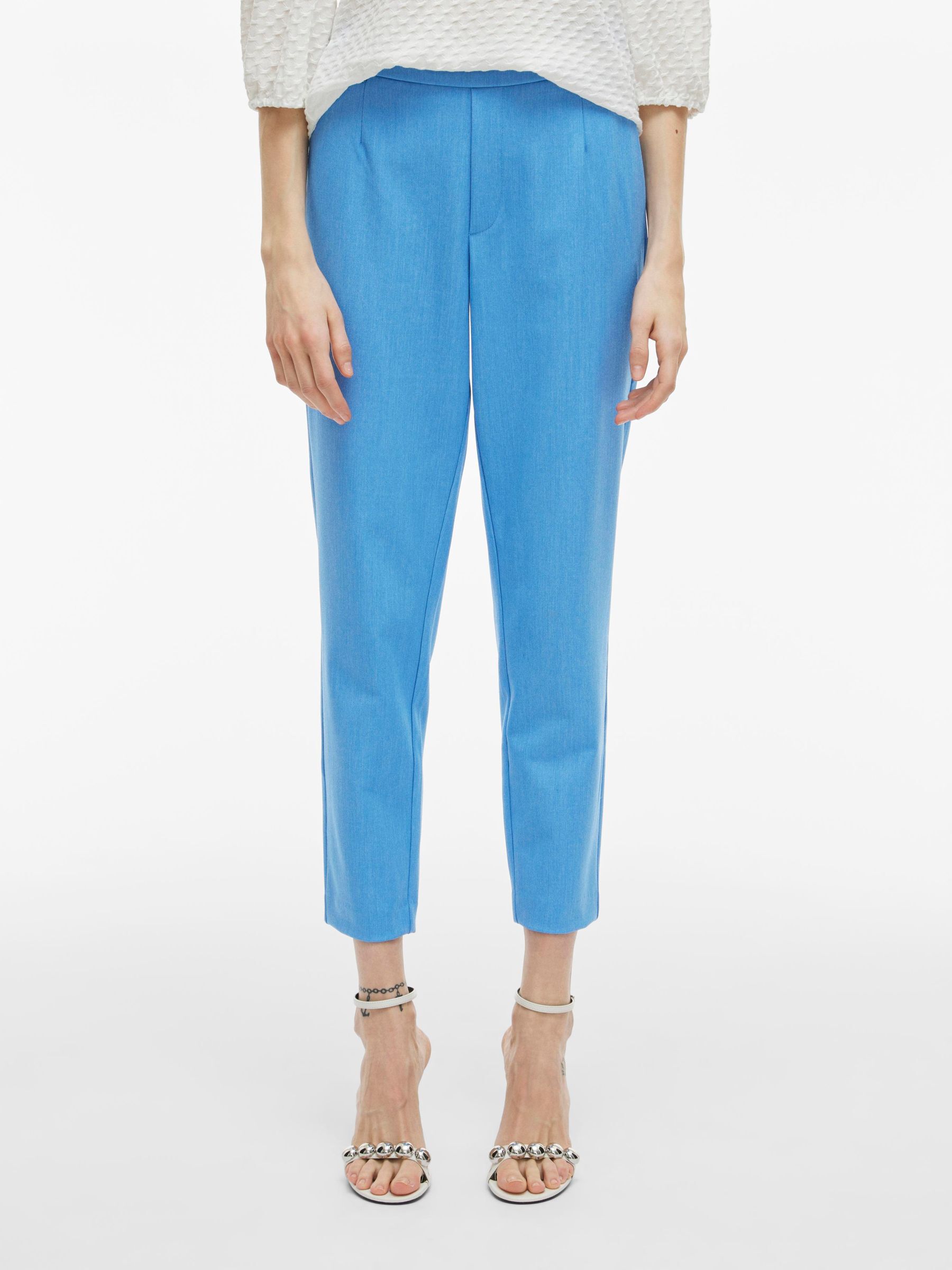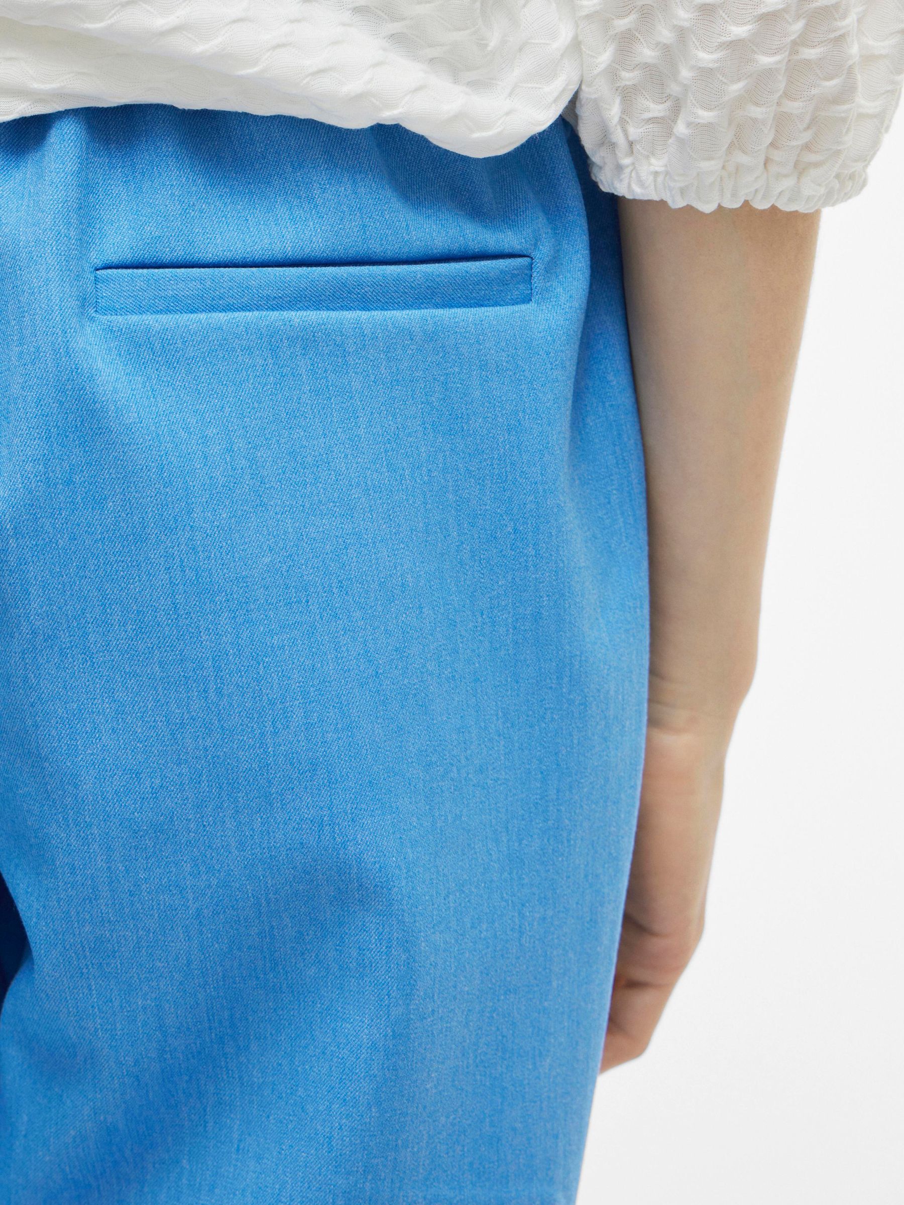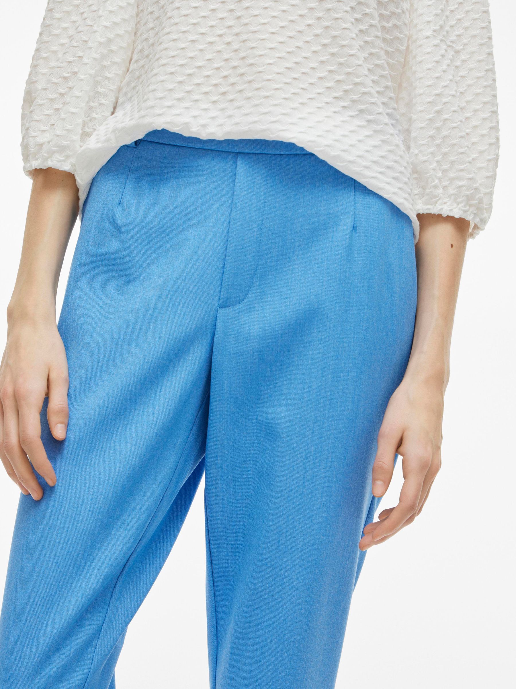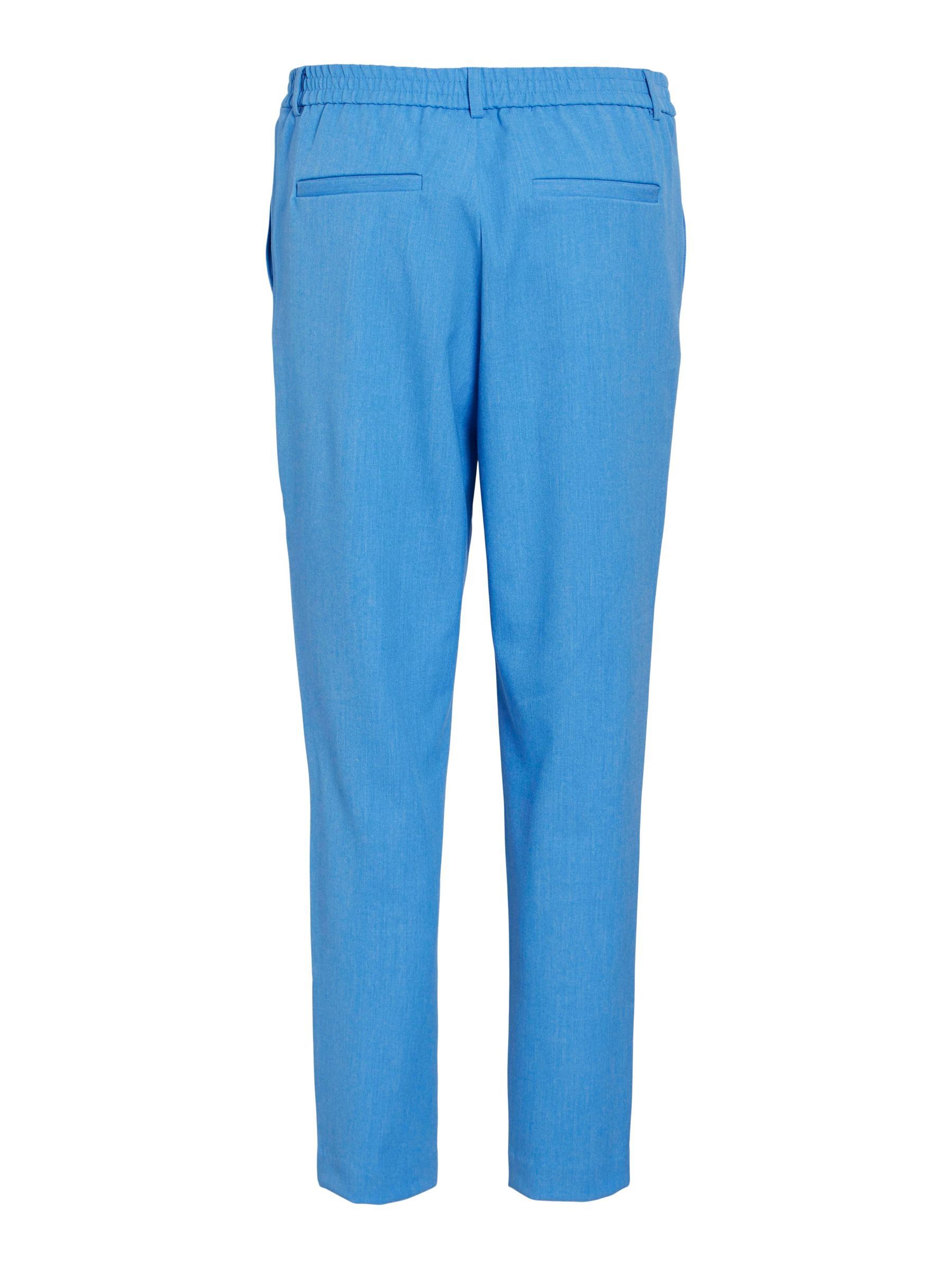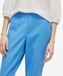 – High waist pants- Stretch-back waist- Faux zip fastening- Side pockets- Decorative back pockets- Belt loops – Straight, slim fit- Inseam: 69 cm in size 38- Frontrise: 28 cm in size 38
