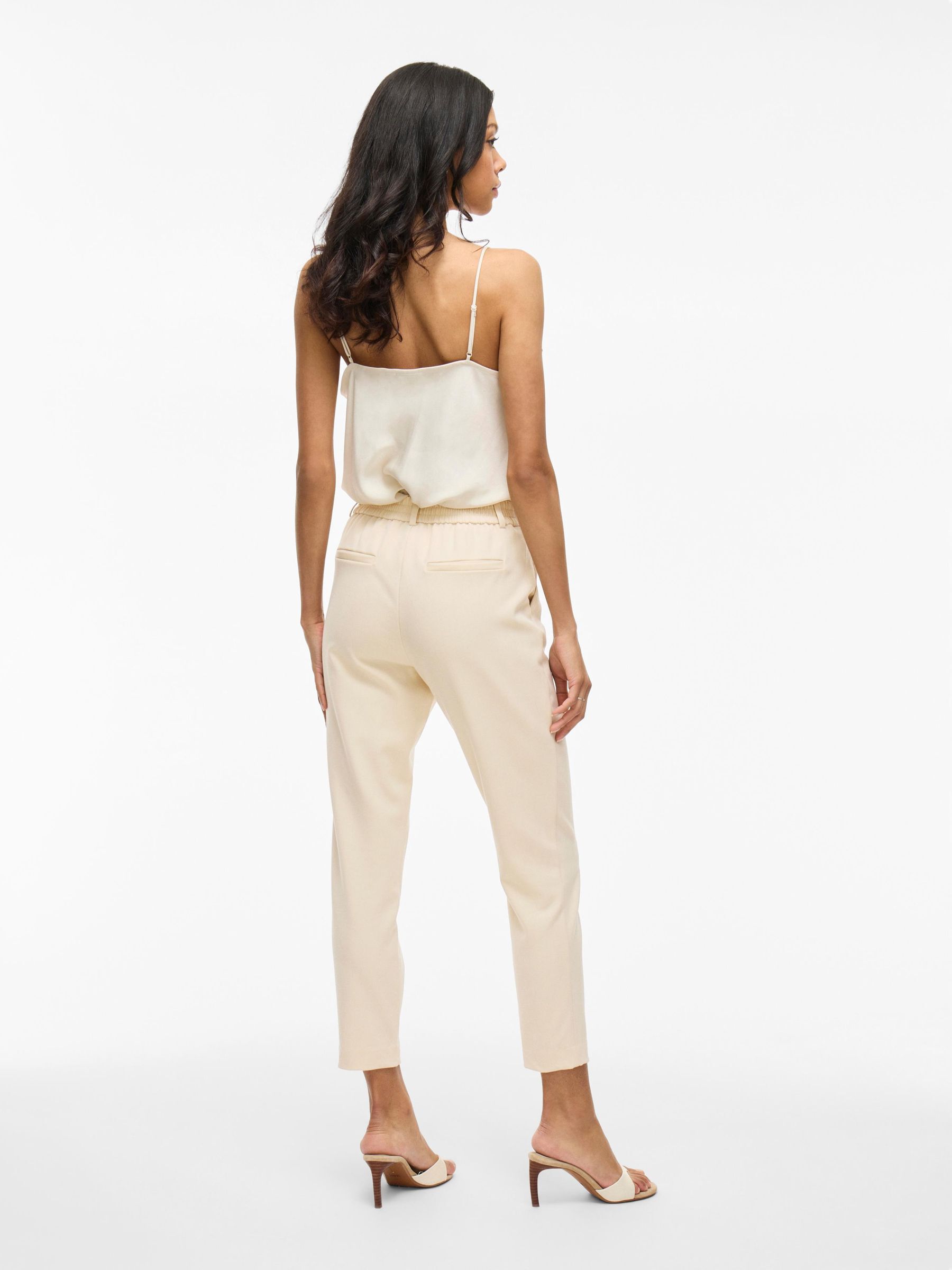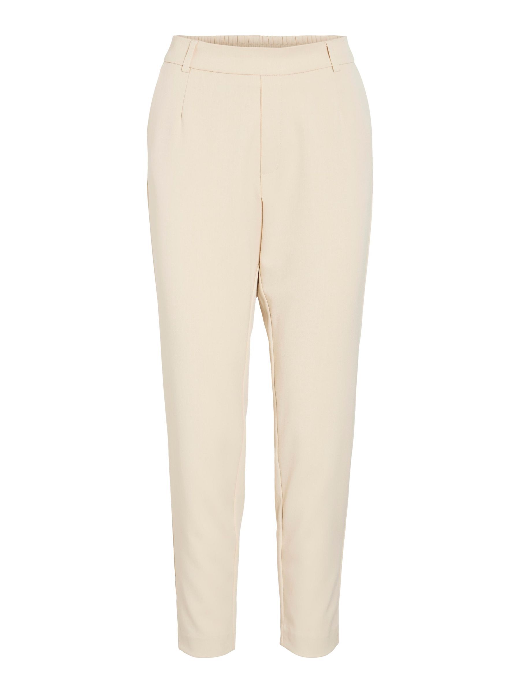 – High waist pants- Stretch-back waist- Faux zip fastening- Side pockets- Decorative back pockets- Belt loops – Straight, slim fit- Inseam: 69 cm in size 38- Frontrise: 28 cm in size 38