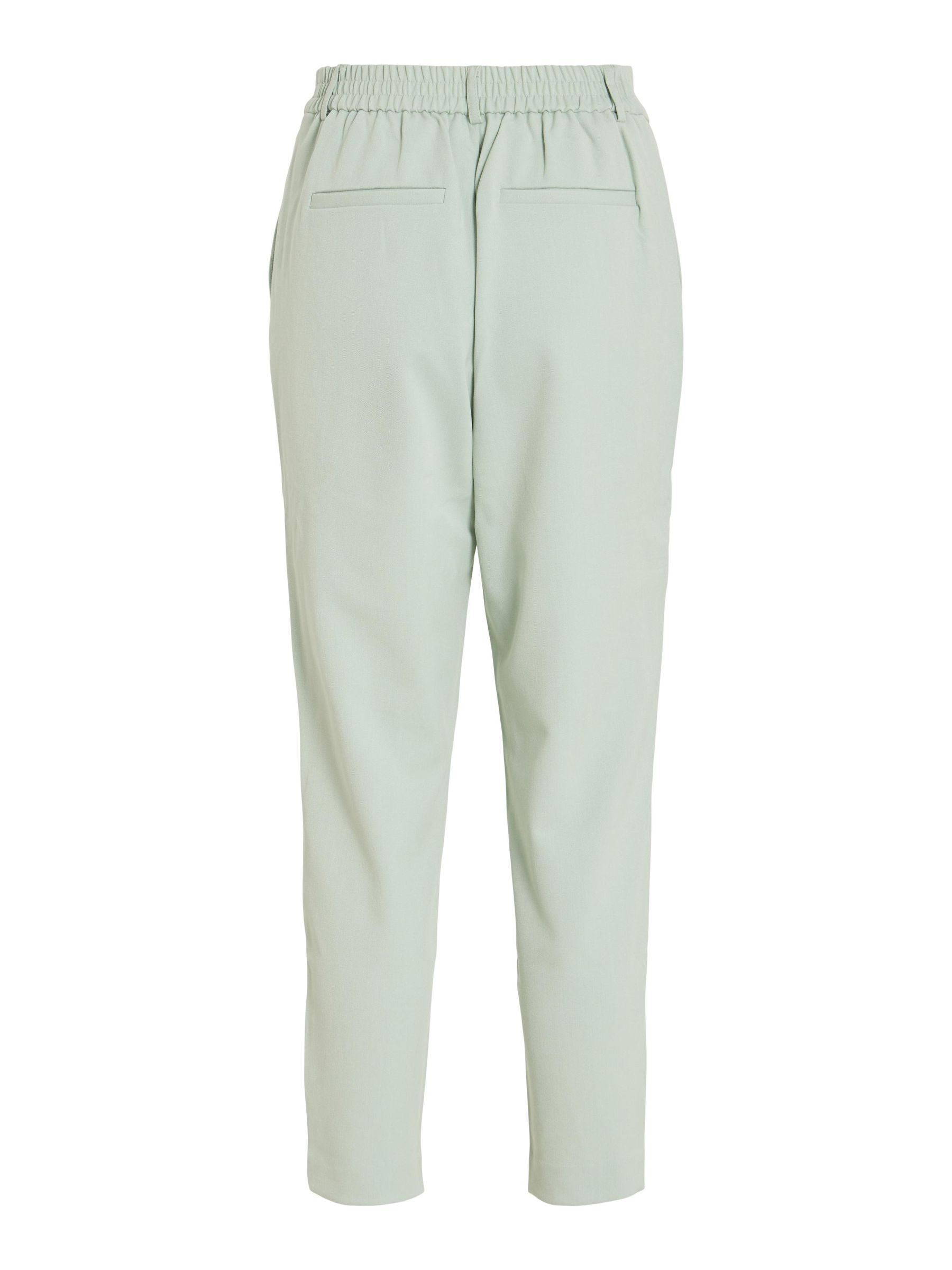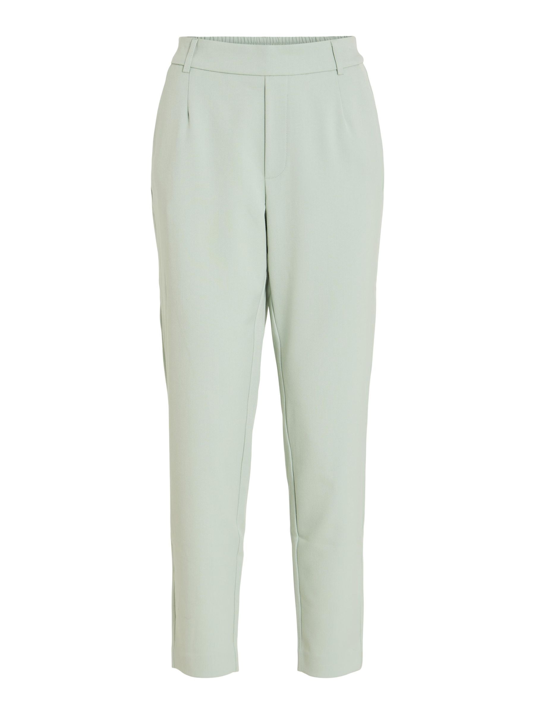 – High waist pants- Stretch-back waist- Faux zip fastening- Side pockets- Decorative back pockets- Belt loops – Straight, slim fit- Inseam: 69 cm in size 38- Frontrise: 28 cm in size 38