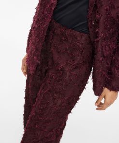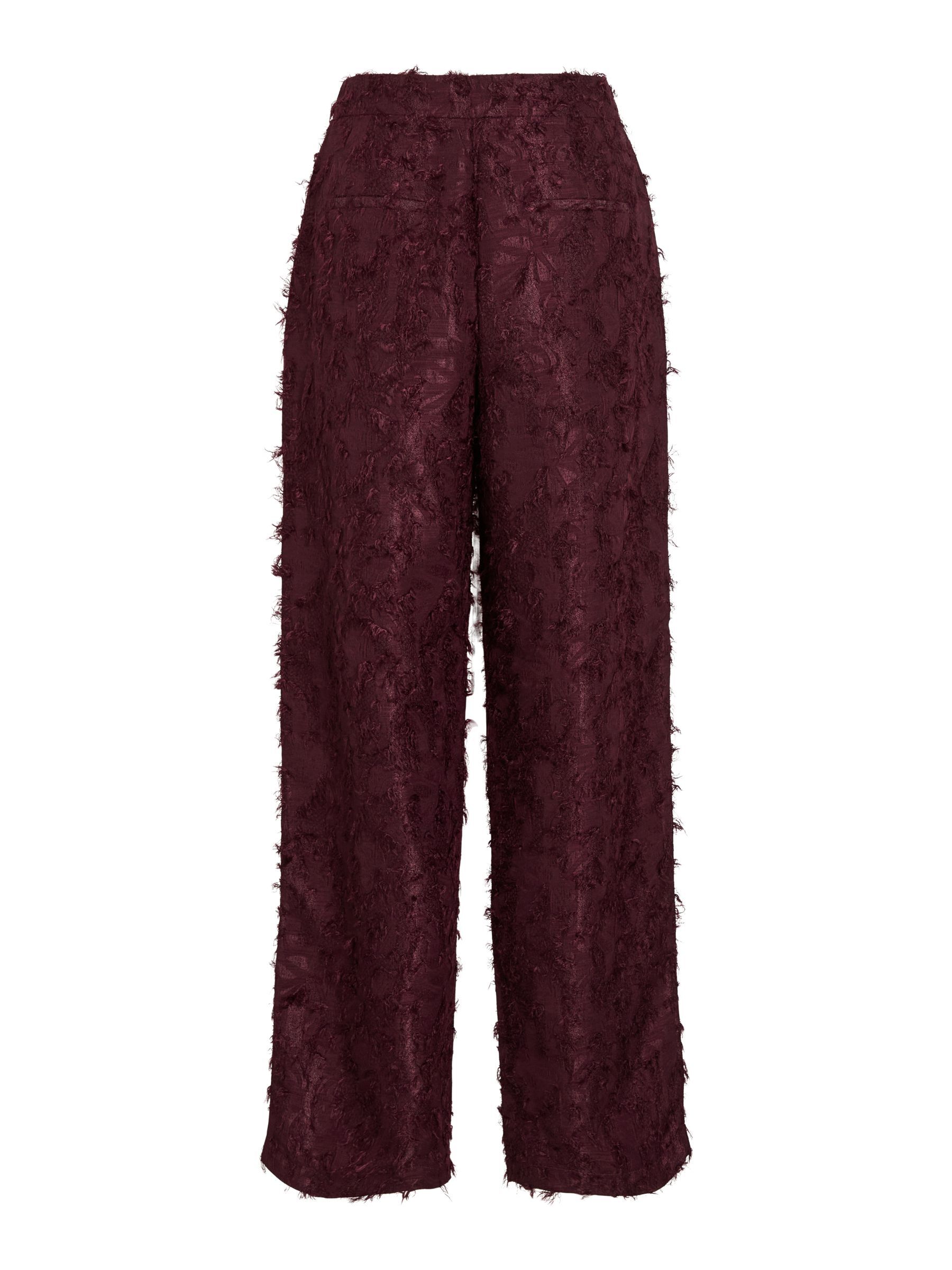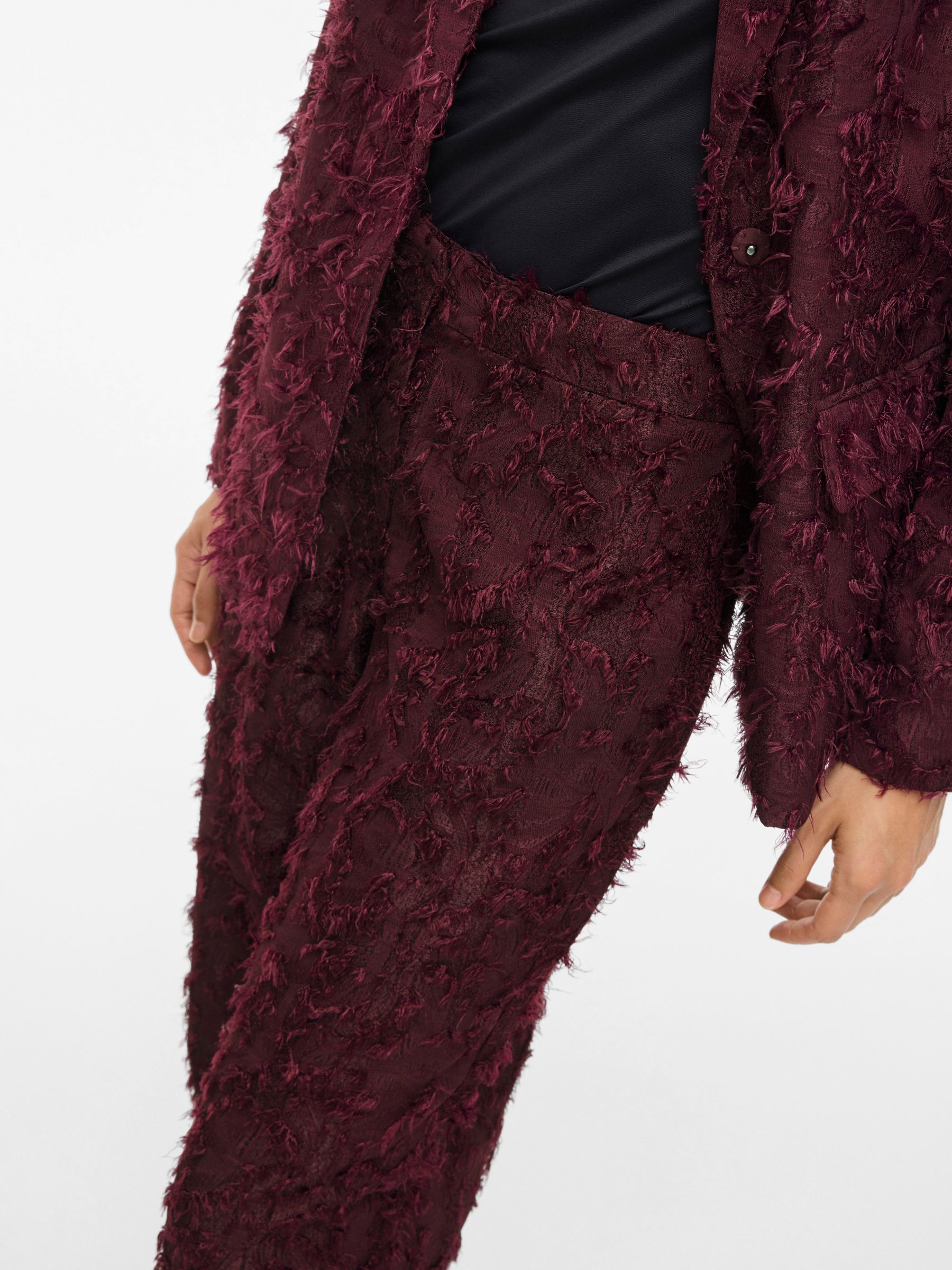 • Tailored trousers• High waist• Zip, button and clasp fastening• Side pockets• Decorative back pockets• Textured fabric• Straight fit• Inseam: 80 cm in size 38• Frontrise: 31.5 cm in size 38
