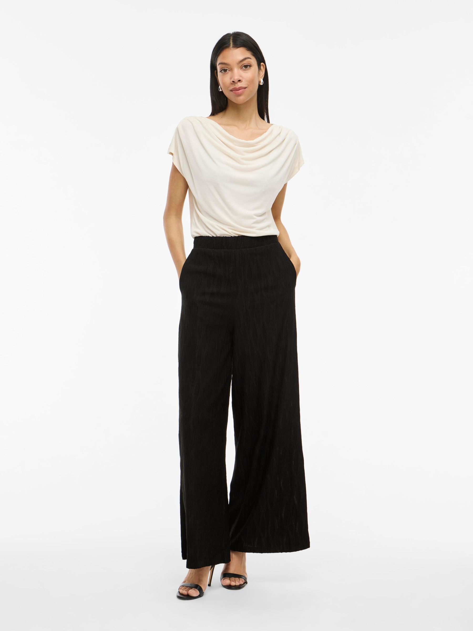 • High waisted wide-leg trousers• Elastic waistband• Half lined• Textured fabric• Wide fit• Inseam: 76.5 cm in size M• Frontrise: 32.5 cm in size M