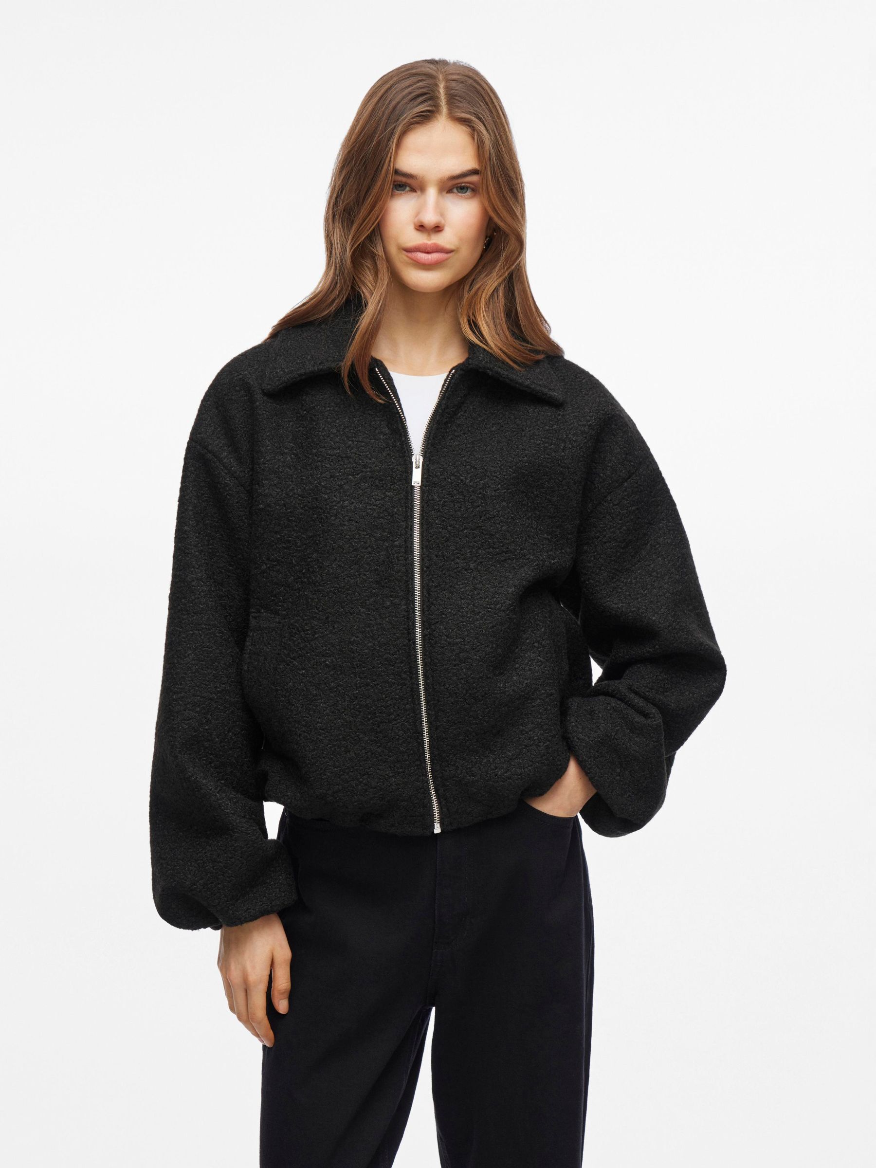 • Long sleeved bomber jacket• Front zip fastening• Front pockets• Elastic cuffs• Dropped shoulders• Elasticated waist• Regular fit• Length: 58 cm in size 38• Sleeve length: 62 cm in size 38