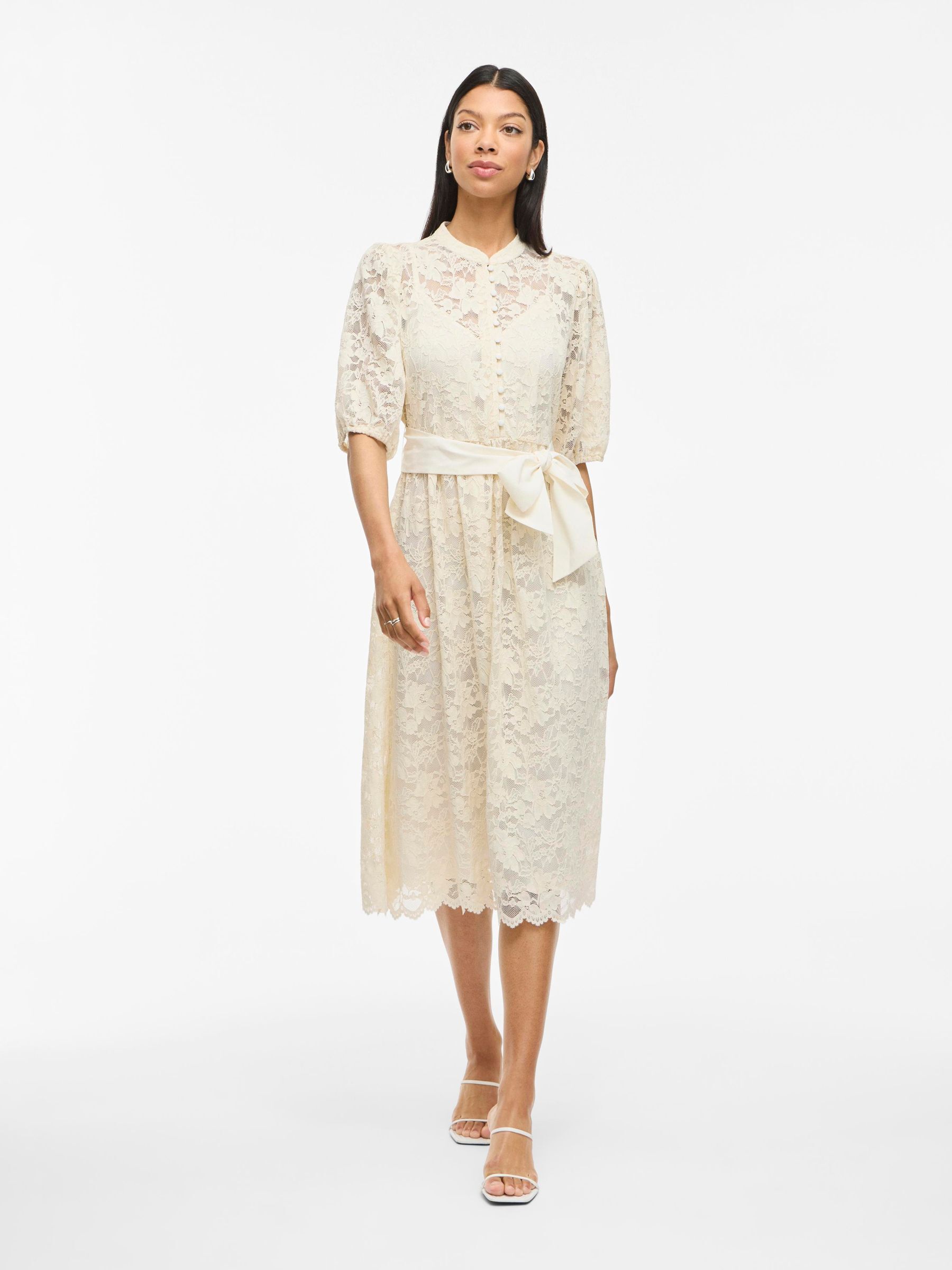 • Midi lace dress• Short sleeves• Round neck• Elastic cuffs• Tie waist with removable belt• Comes with inner strap dress• Regular fit• Length: 115 cm in size M• Sleeve length: 35 cm in size M