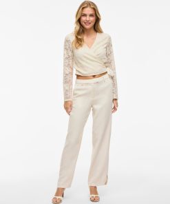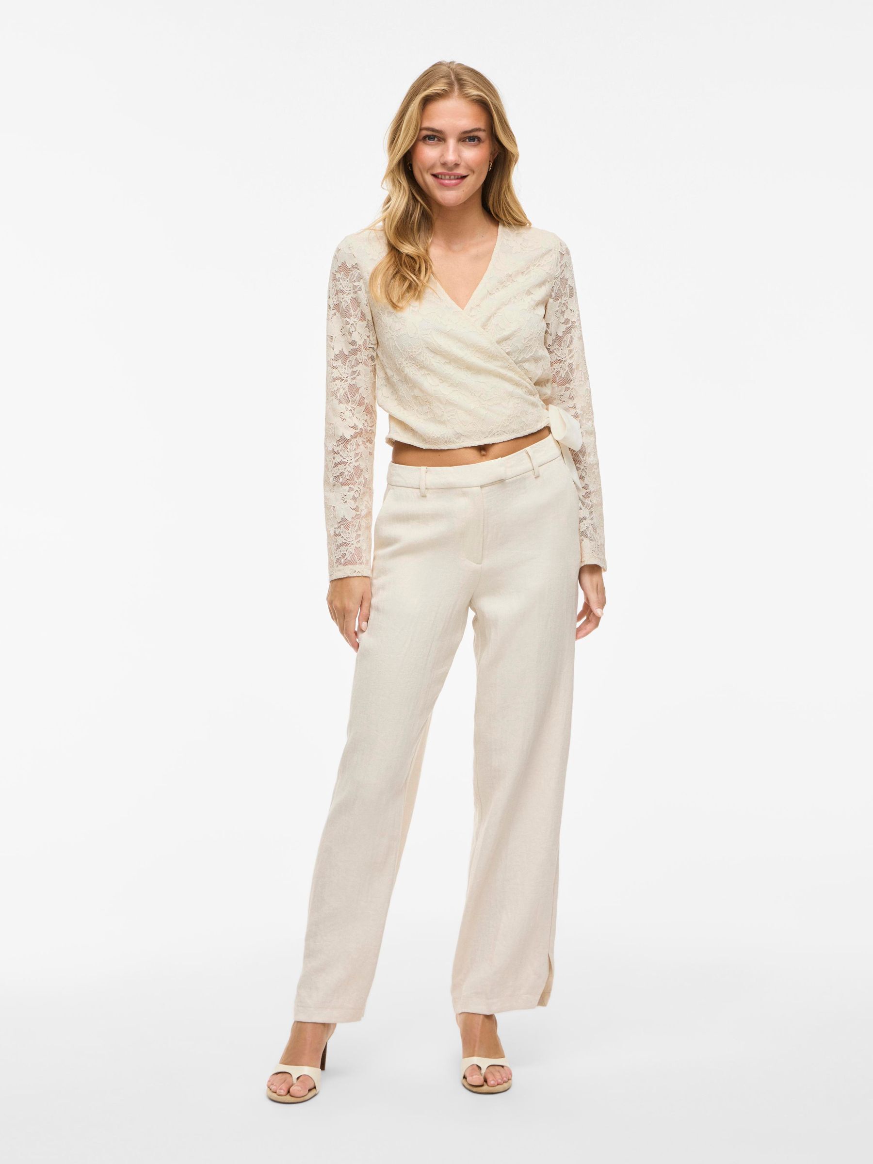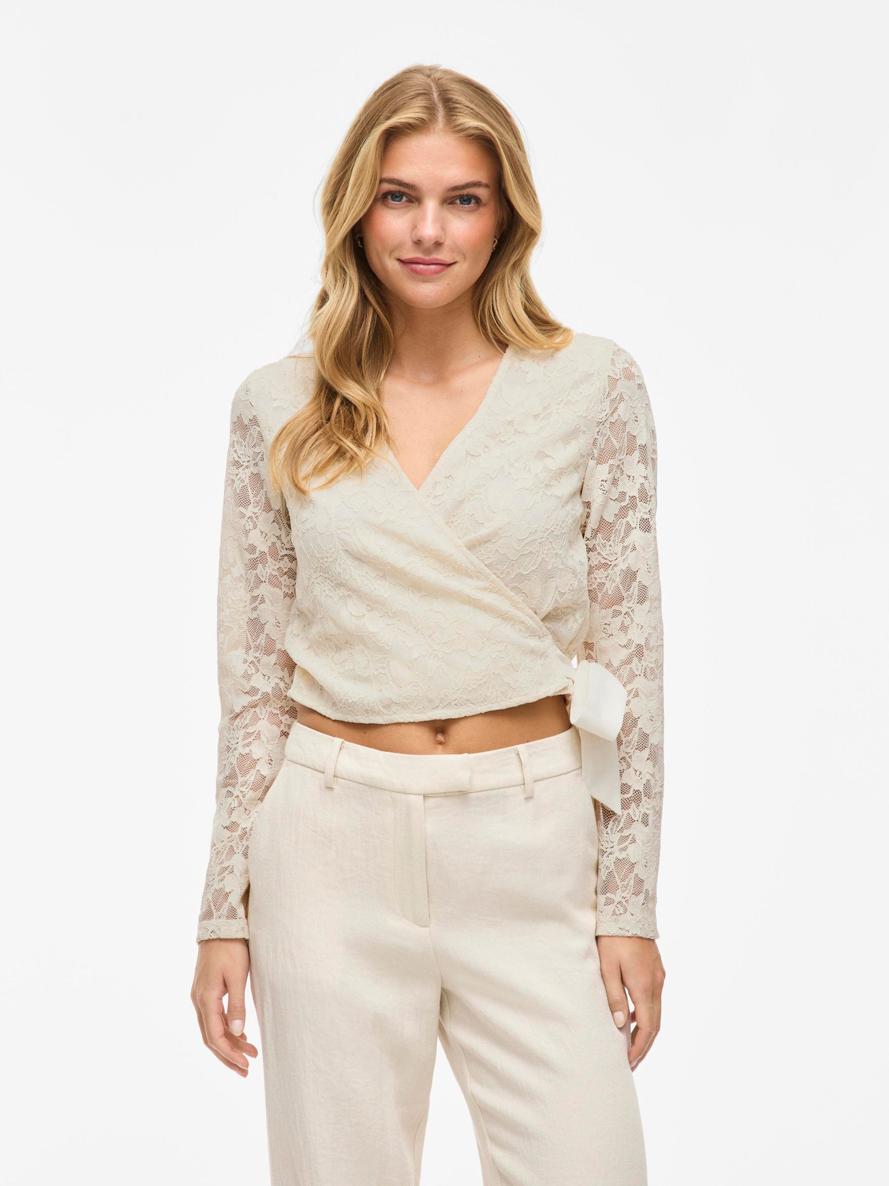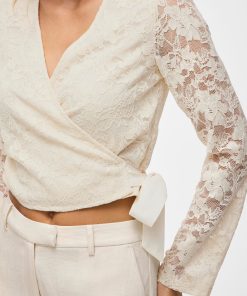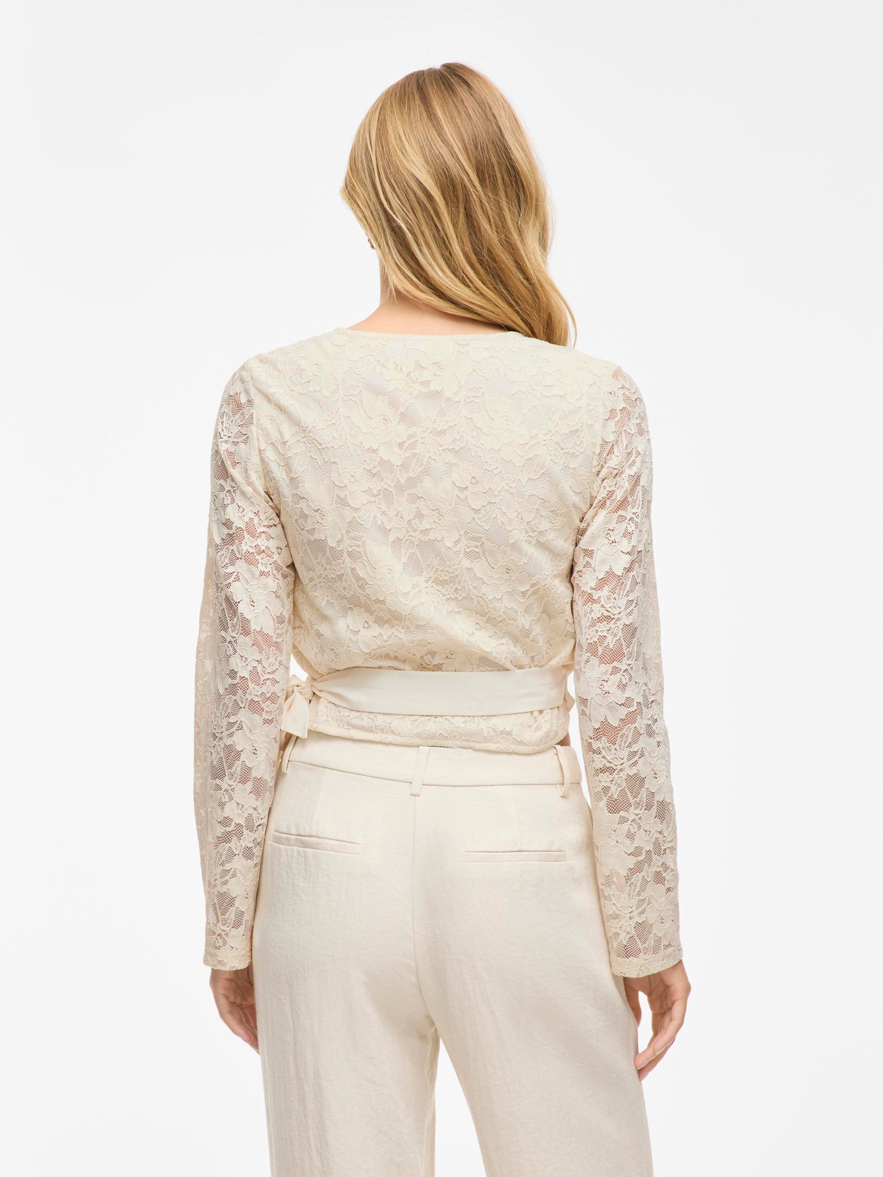 • Long-sleeve lace wrap top• V-neck• Lined body with sheer overlay• Regular fit• Length: 48 cm in size M• Sleeve length: 65 cm in size M
